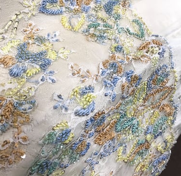 クチュリエの手仕事による繊細な刺繍とビーズワーク